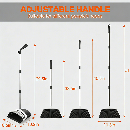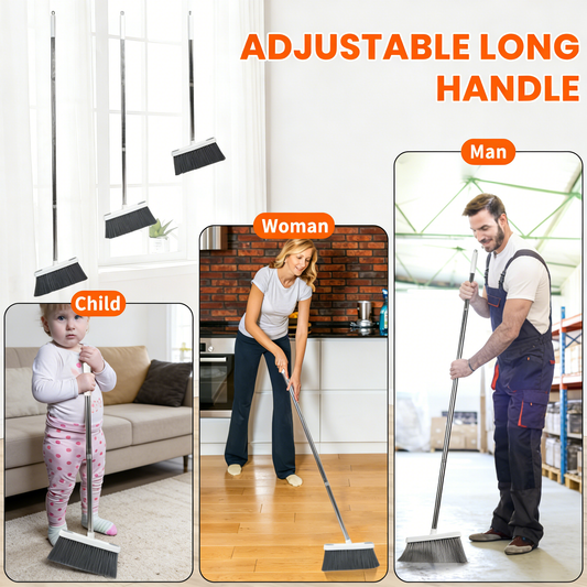 Adjustable Broom and Dustpan Set with Built-in Comb Teeth