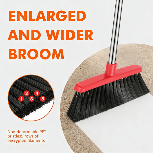 Adjustable Long Handle Heavy-Duty PET Bristle Broom