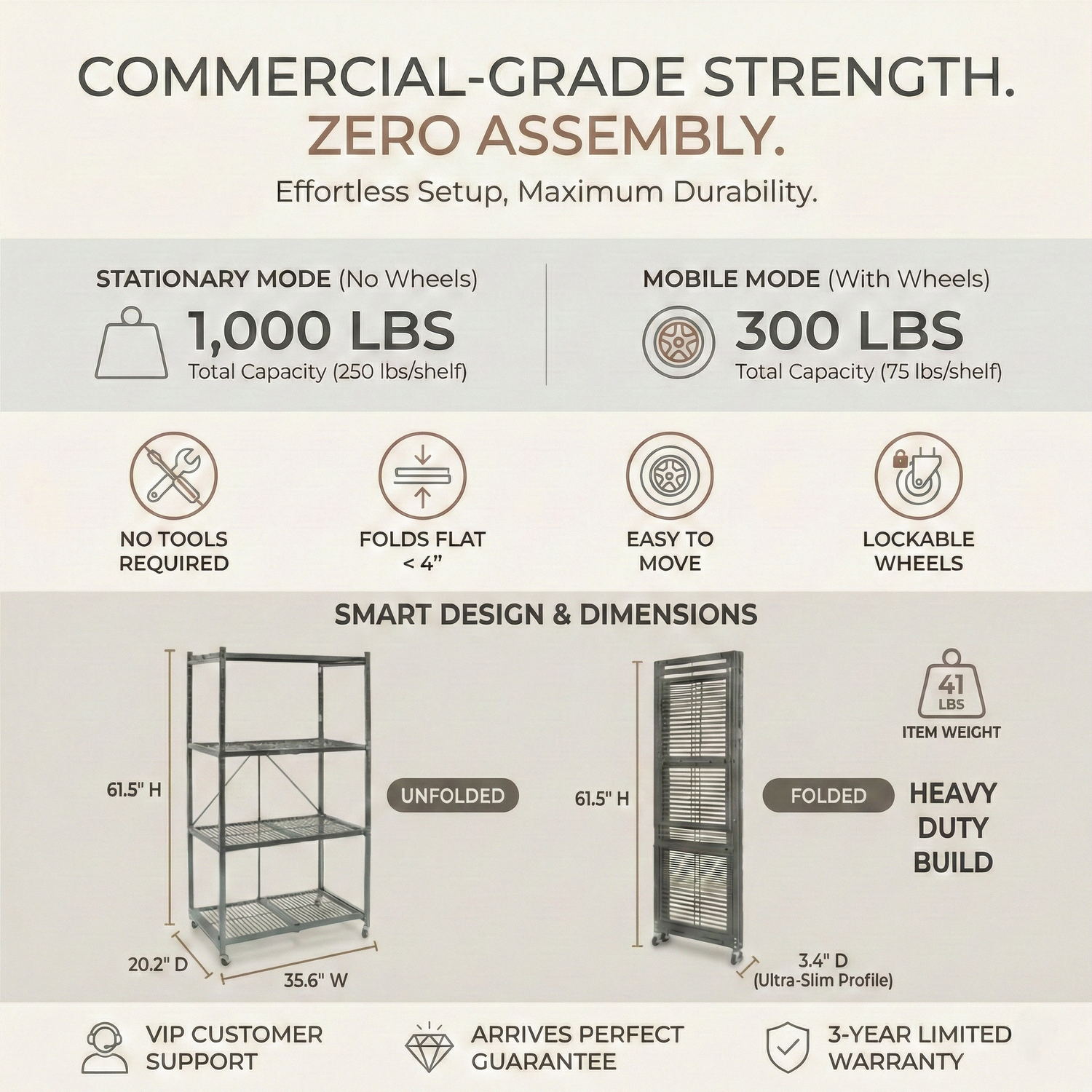 Versatile Use: The ultimate solution for your garage, pantry, or warehouse.